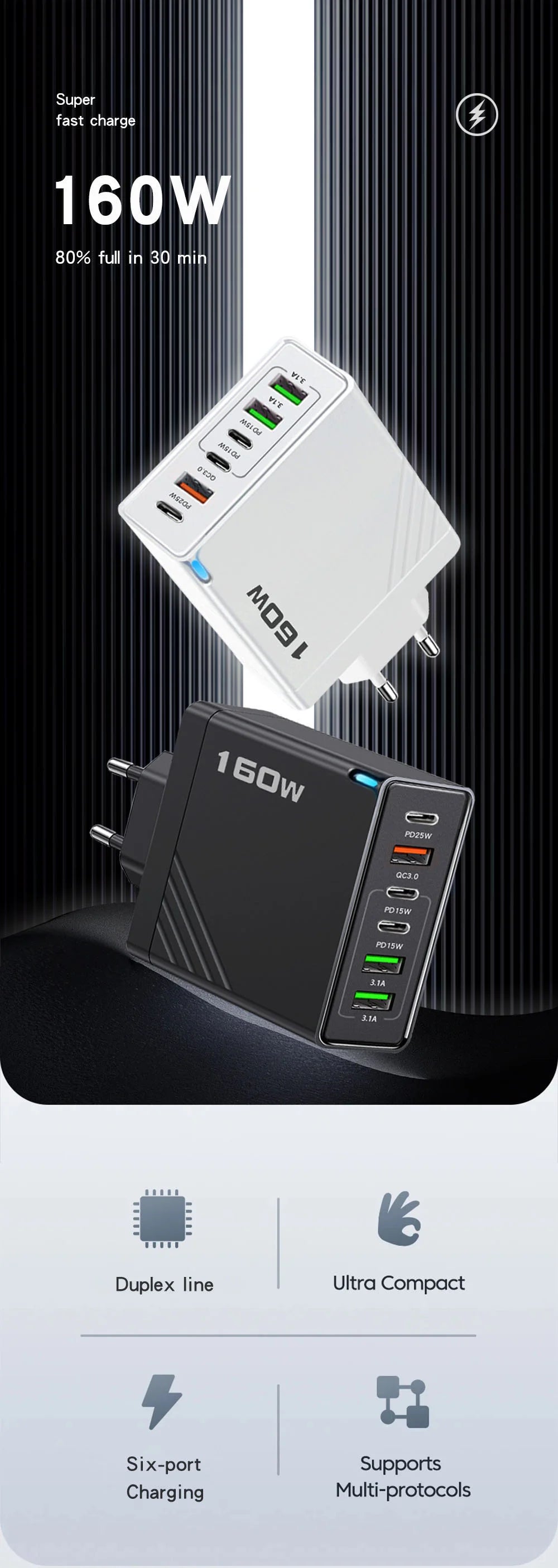 Power: 160W(3USB+3PD)