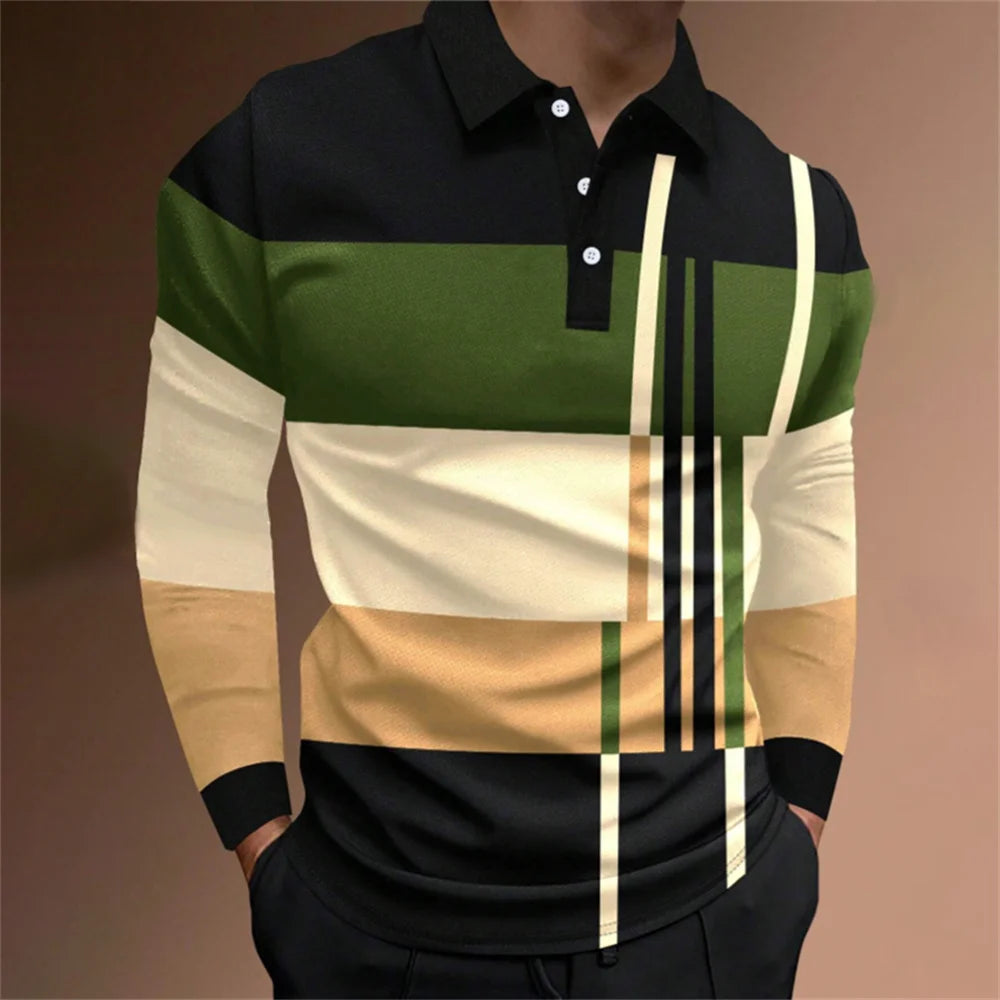 2024 Spring Mens Polo Shirt Long Sleeve Stand Basic Blouse Tee Shirt Top Casual T-shirt Men Shirt