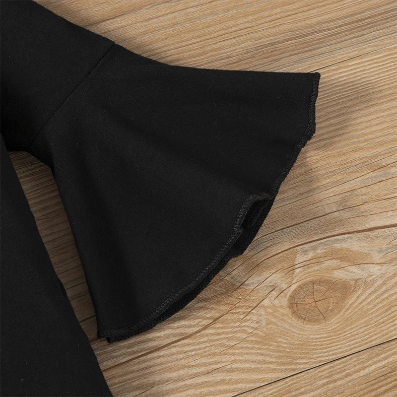 2pcs Baby Girl Clothes Sets Black Pullover Top + Leopard Print Bell-Bottoms Autumn Children's Clothing For 2 3 4 5 7 8 Years Old