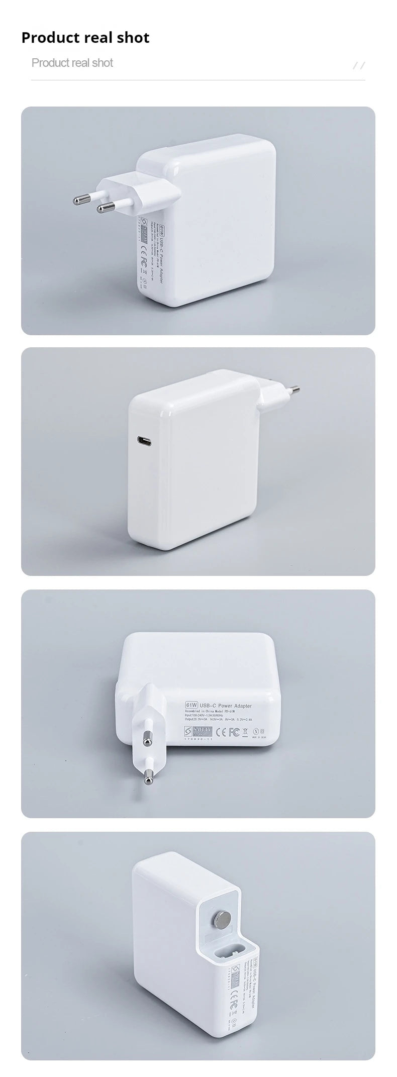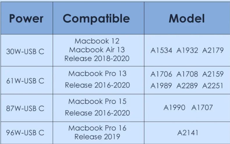 Output: 5V/3A, 9V/3A, 12V/3A, 15V/3A, 20.3V/3A, 20V/3.25A 61W(Compatible 15W/27W/30W45W/61W)