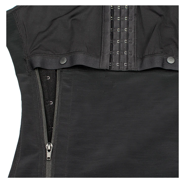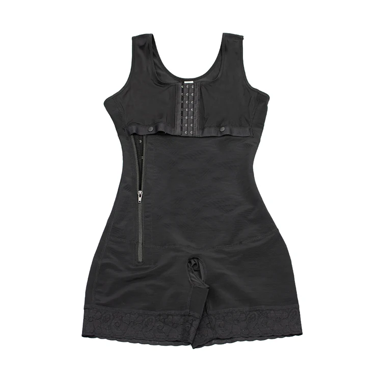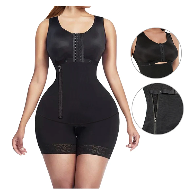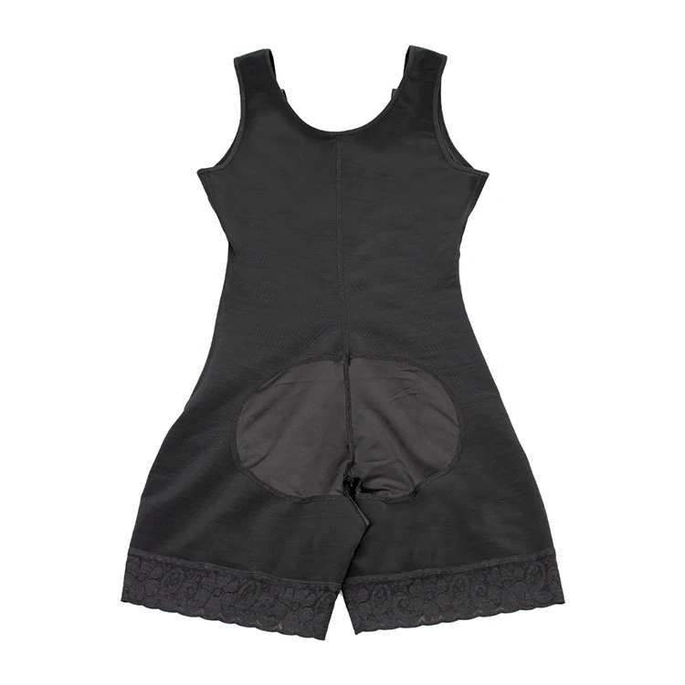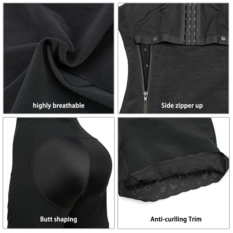 High-quality double-layer material, high-compression tummy control, adjustable front hooks, zippered open crotch, and anti-wrinkle lace hem.