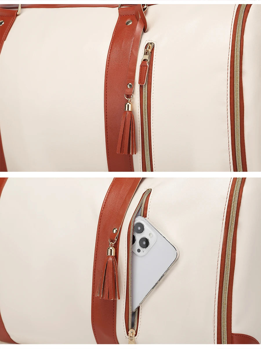 Large Travel Duffel Bag for Women, PU Leather Foldable Suit Storage Bag, Large Capacity, Multifunction, Waterproof, Portable