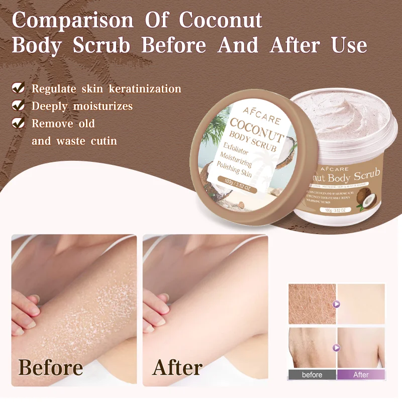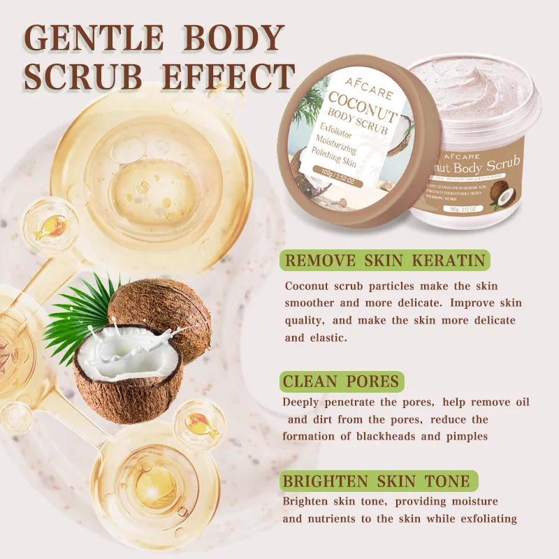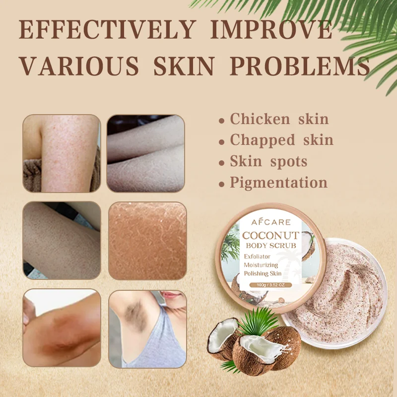 Artículo: Exfoliante corporal de colágeno exfoliante de coco, pulidor corporal, blanqueador de piel de pies, exfoliante, limpieza de poros, eliminación de piel muerta