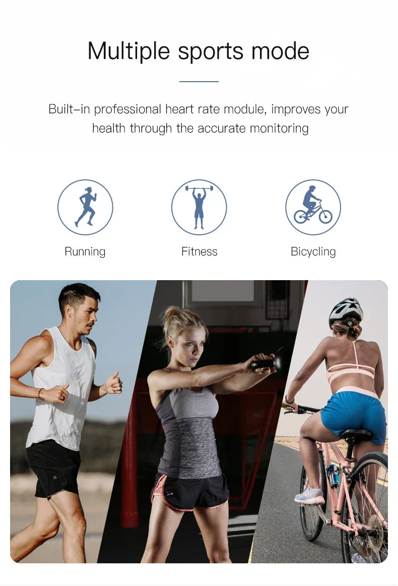 • Seguimiento del ejercicio, monitoreo del sueño, recordatorio de sedentarismo, múltiples modos de ejercicio