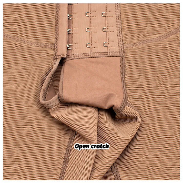 Material de doble capa de compresión gruesa de alta calidad, control de abdomen de alta compresión, cierre de ganchos frontales ajustables, entrepierna abierta,