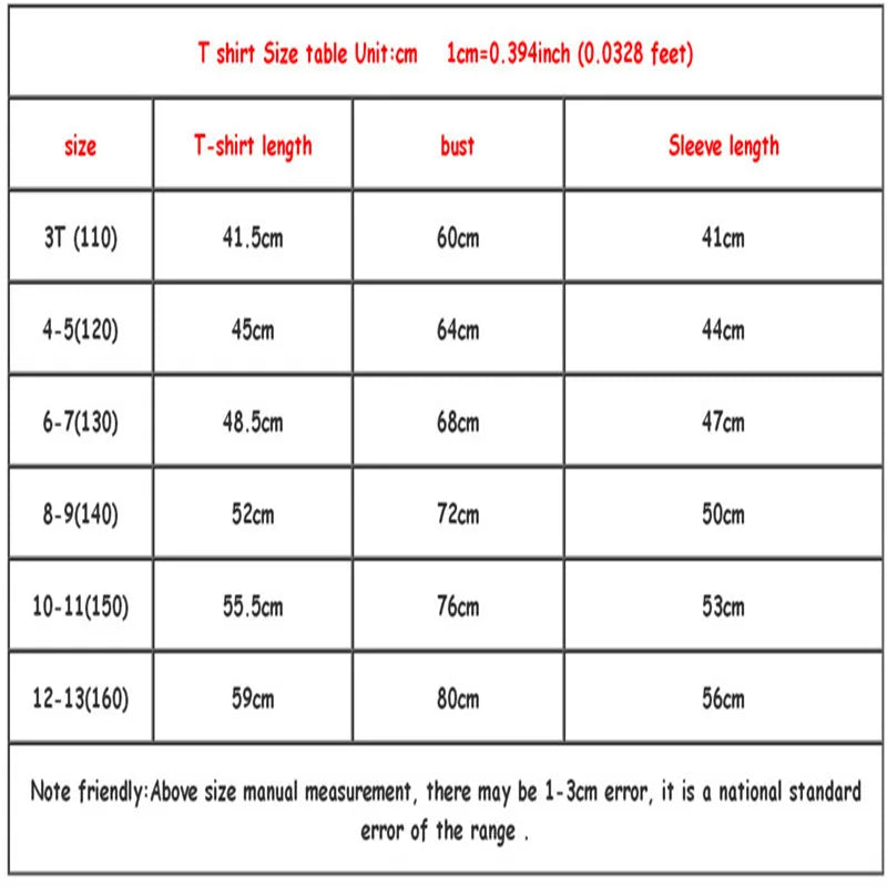 size: 110 120 130 140 150 160