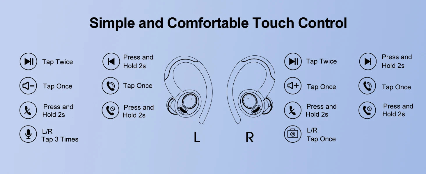 Intuitive touch commands (play/pause, volume, calls, voice assistant) on each earbud. Works seamlessly with iOS, Android, and all Bluetooth devices.