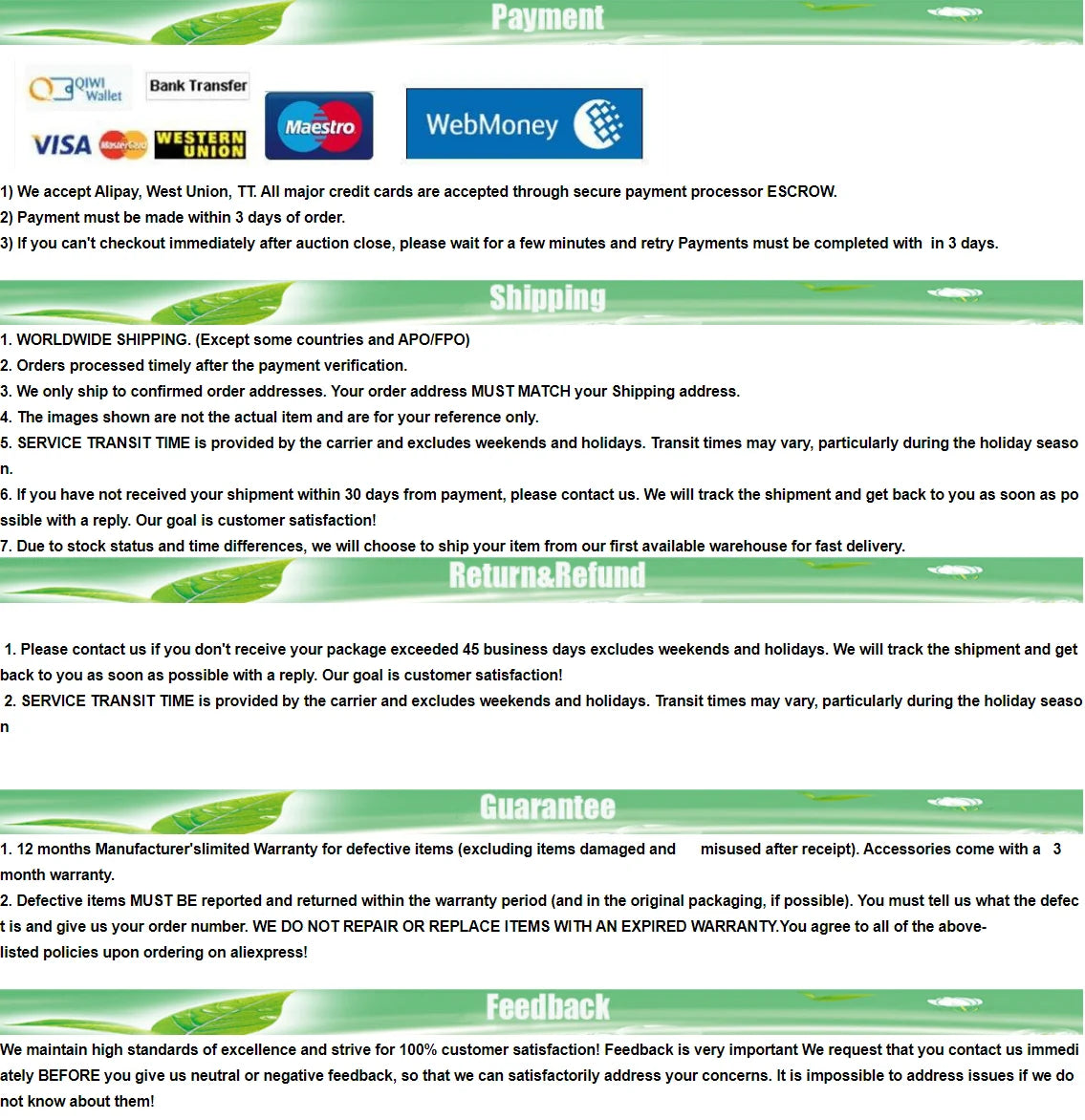 Fast shipping 3 - 7 days