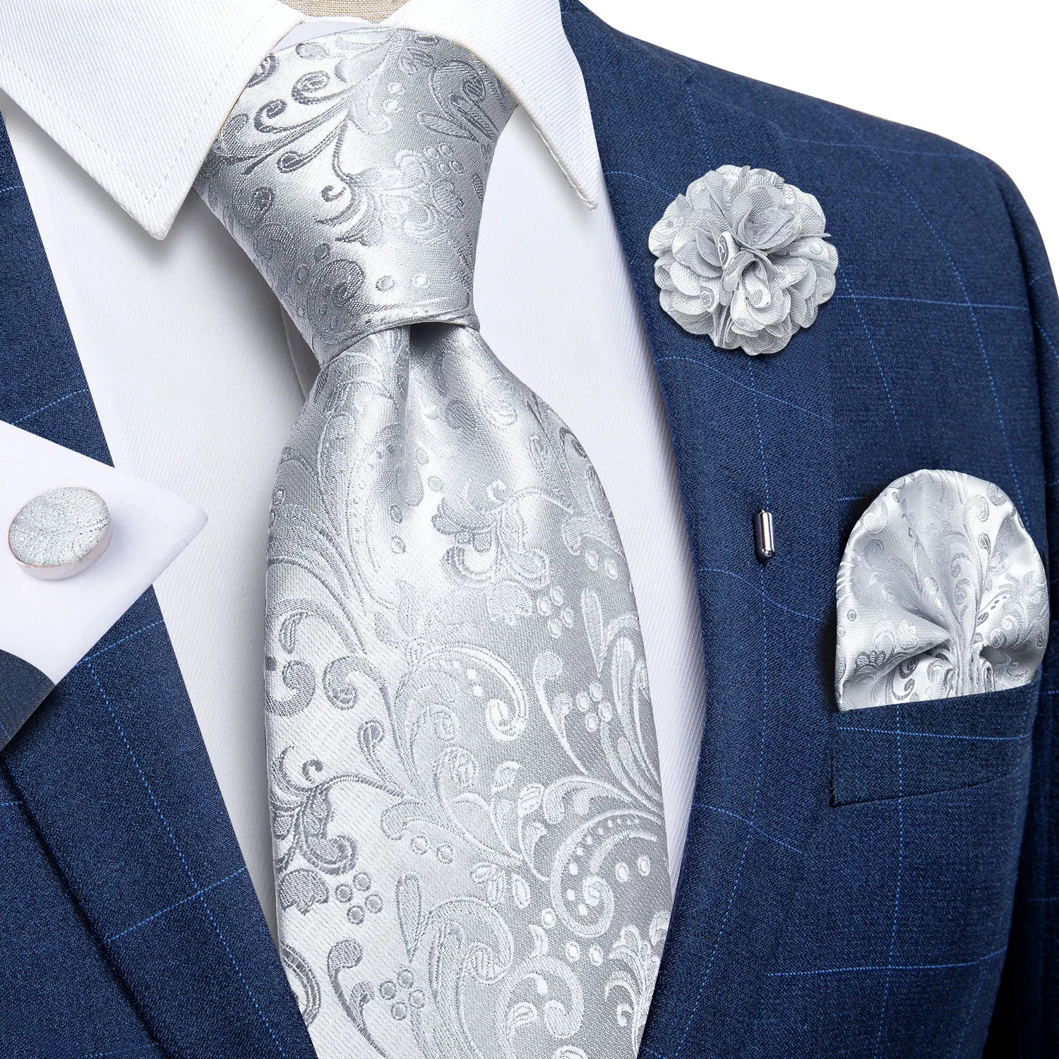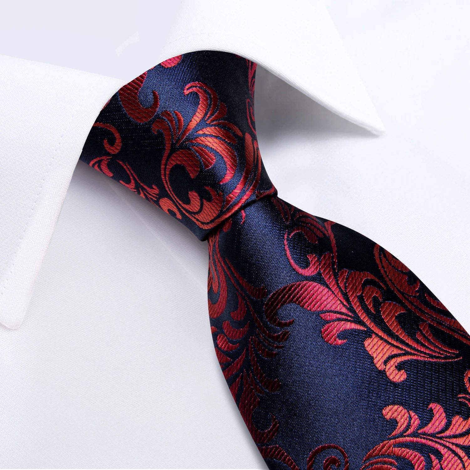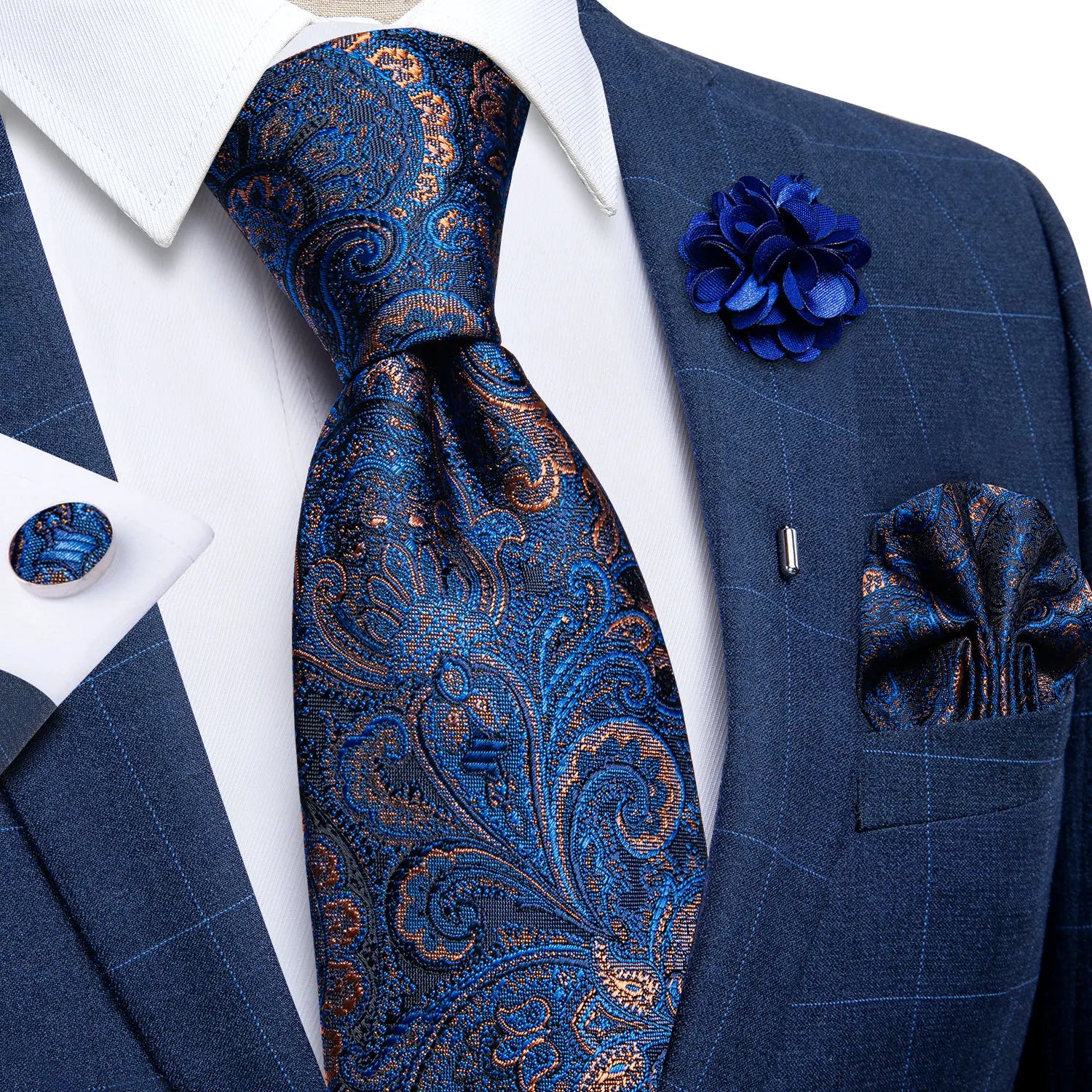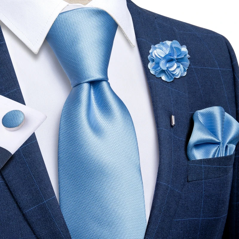 Luxury Red Floral Blue Silk Ties For Men 8cm Wide Necktie Set Pocket Square Cufflinks Brooch Pin Wedding Accessories Men's Gift