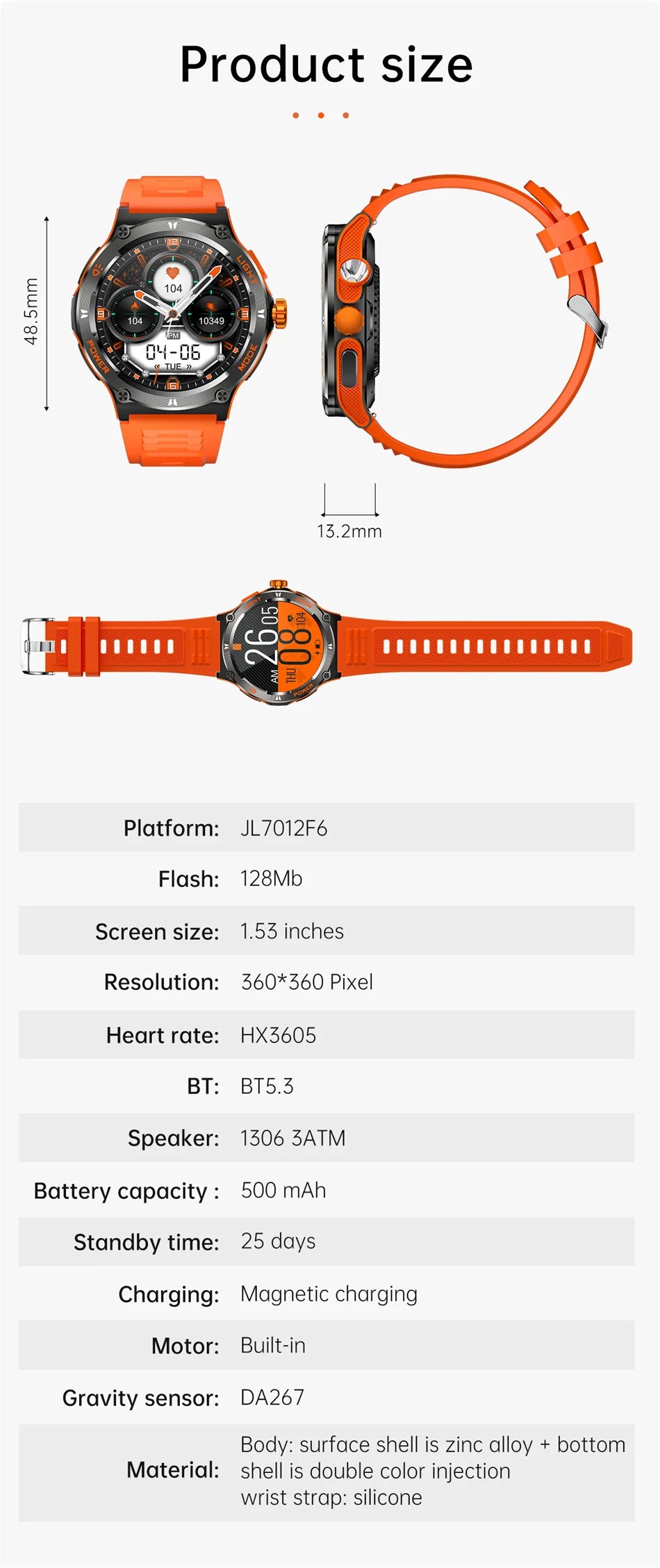 1.53" HD Bluetooth call Compass Flashlight Outdoor Smart Watch Sports Health Monitoring Smart Watch For Android IOS