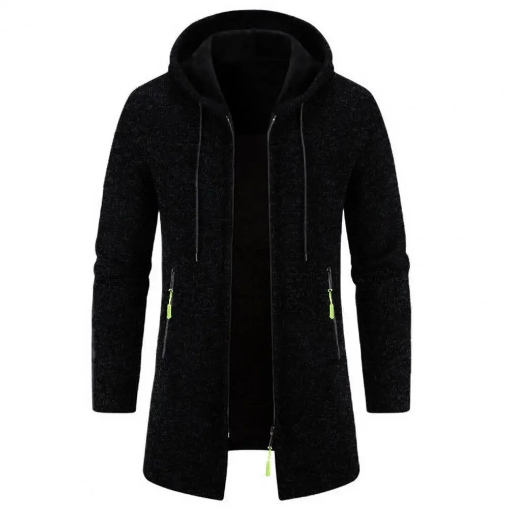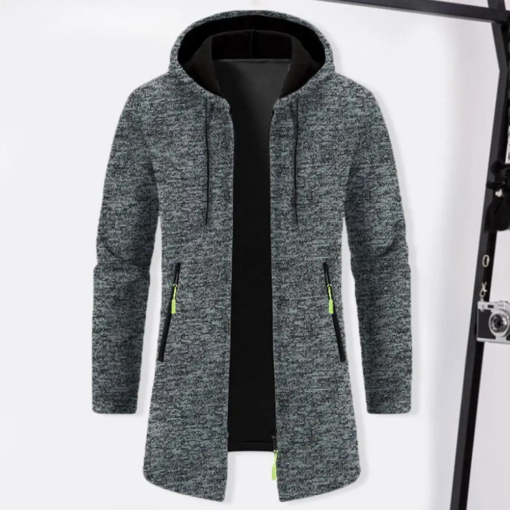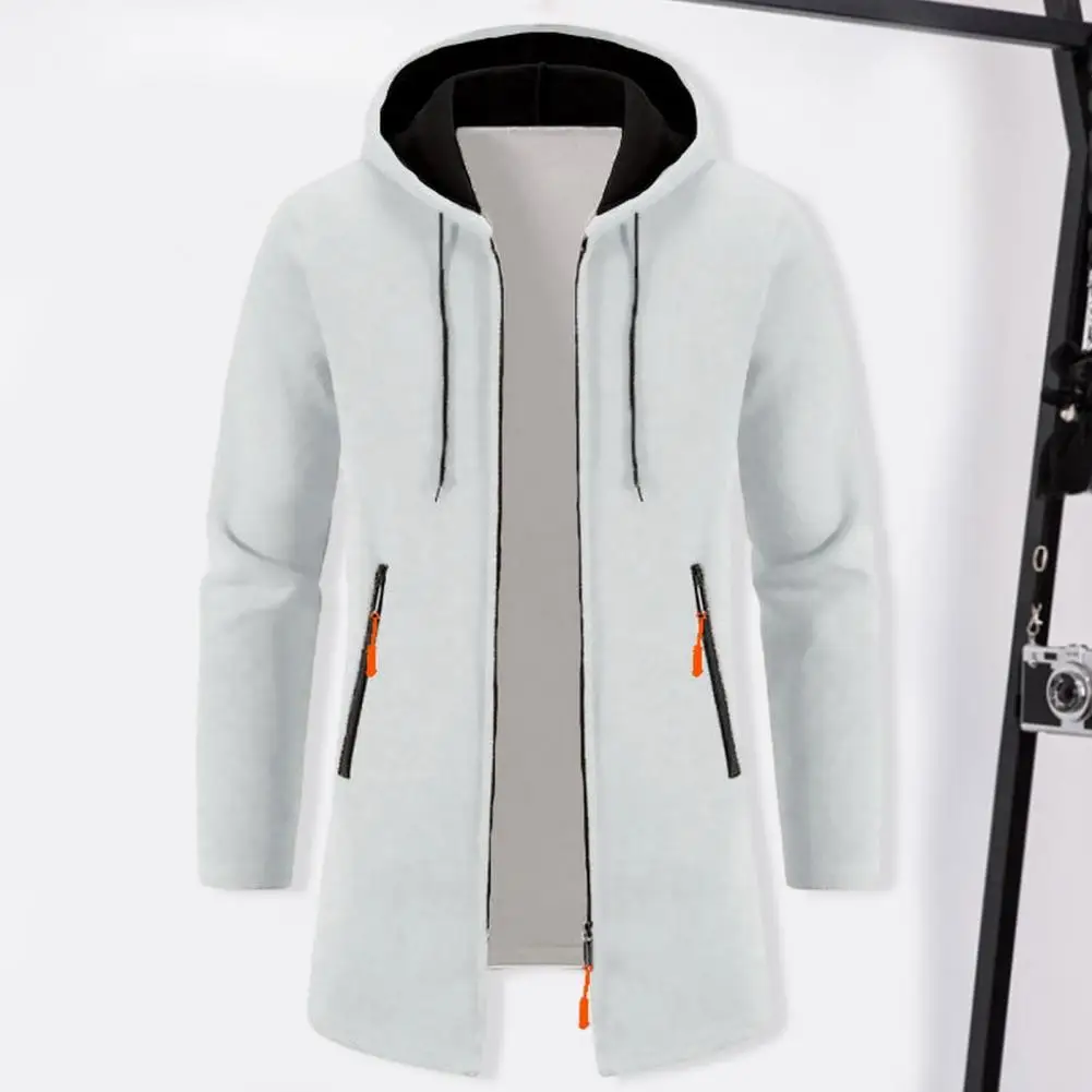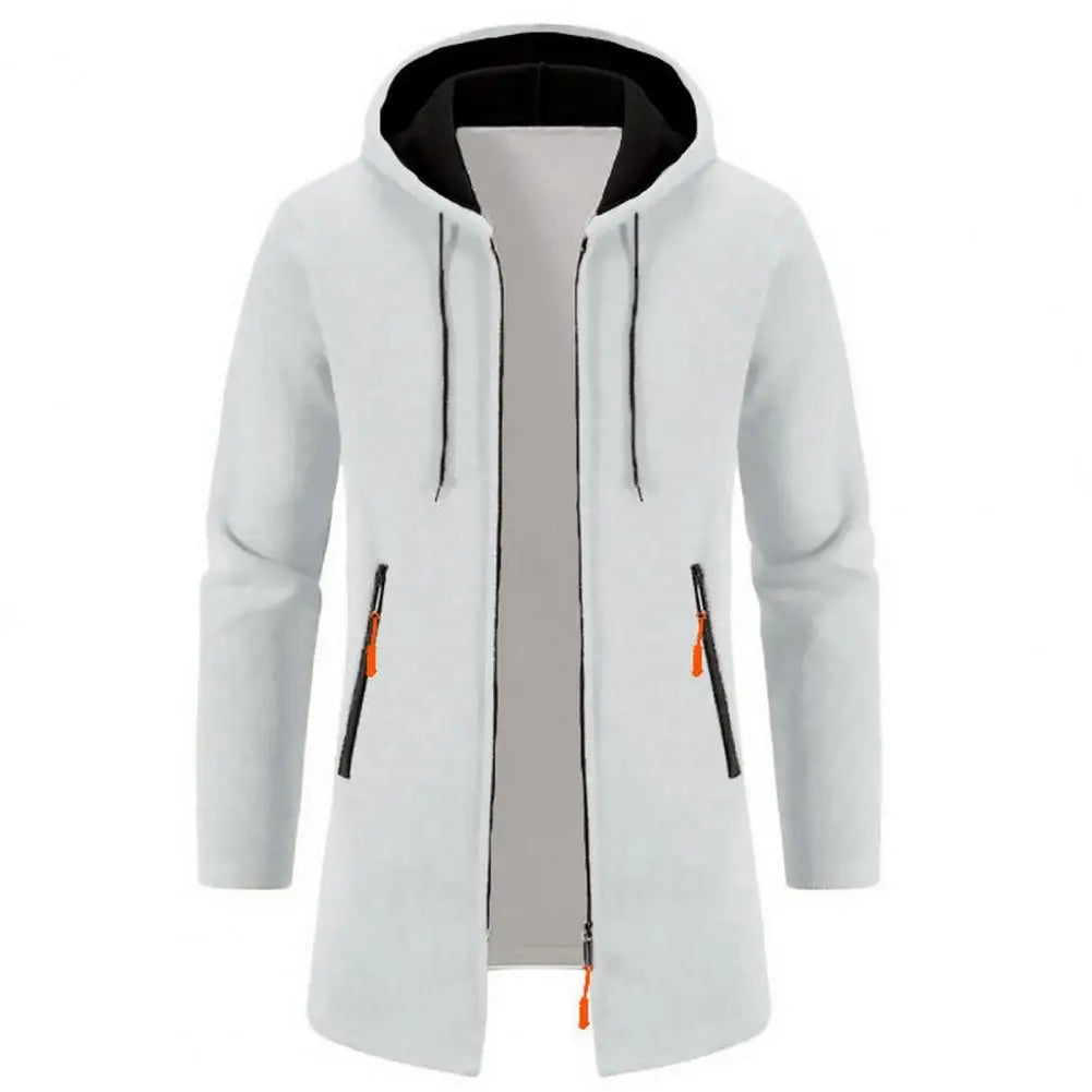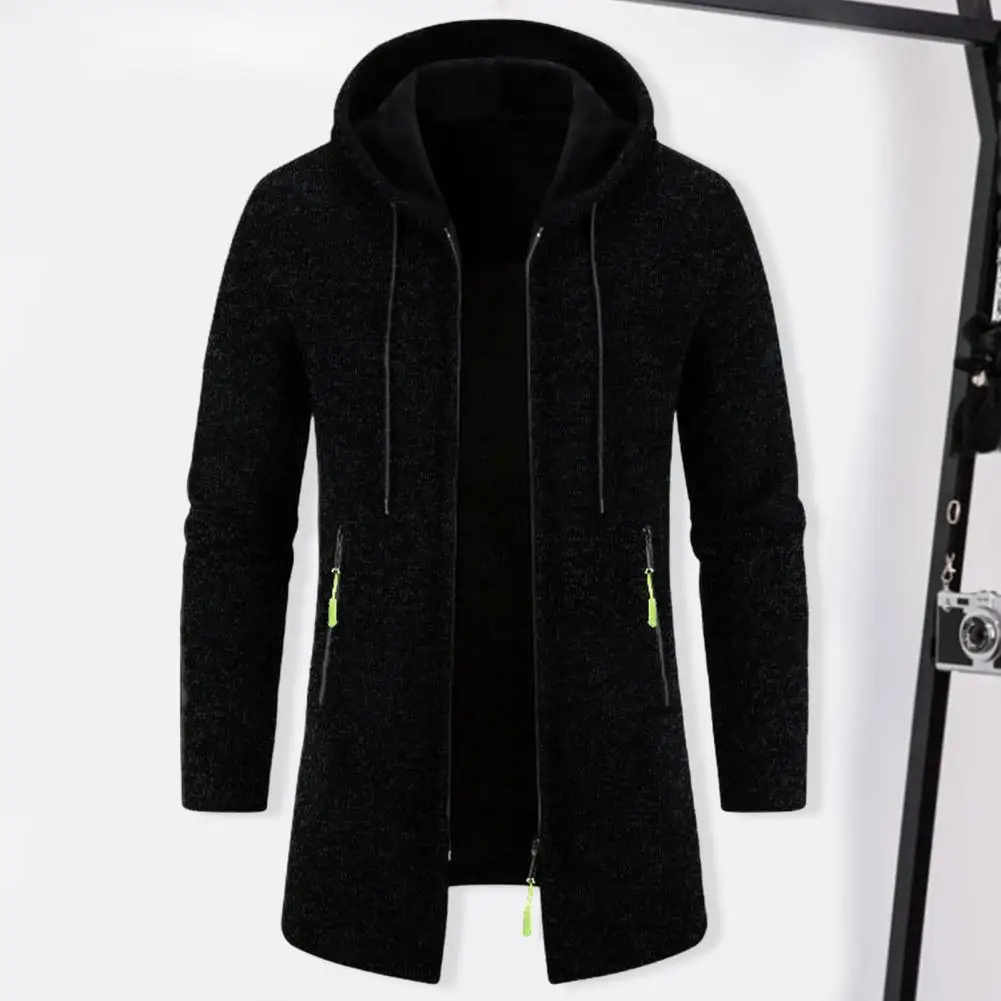 Chaqueta de hombre elegante gruesa de longitud media con capucha y cremallera, cárdigan versátil para otoño/invierno