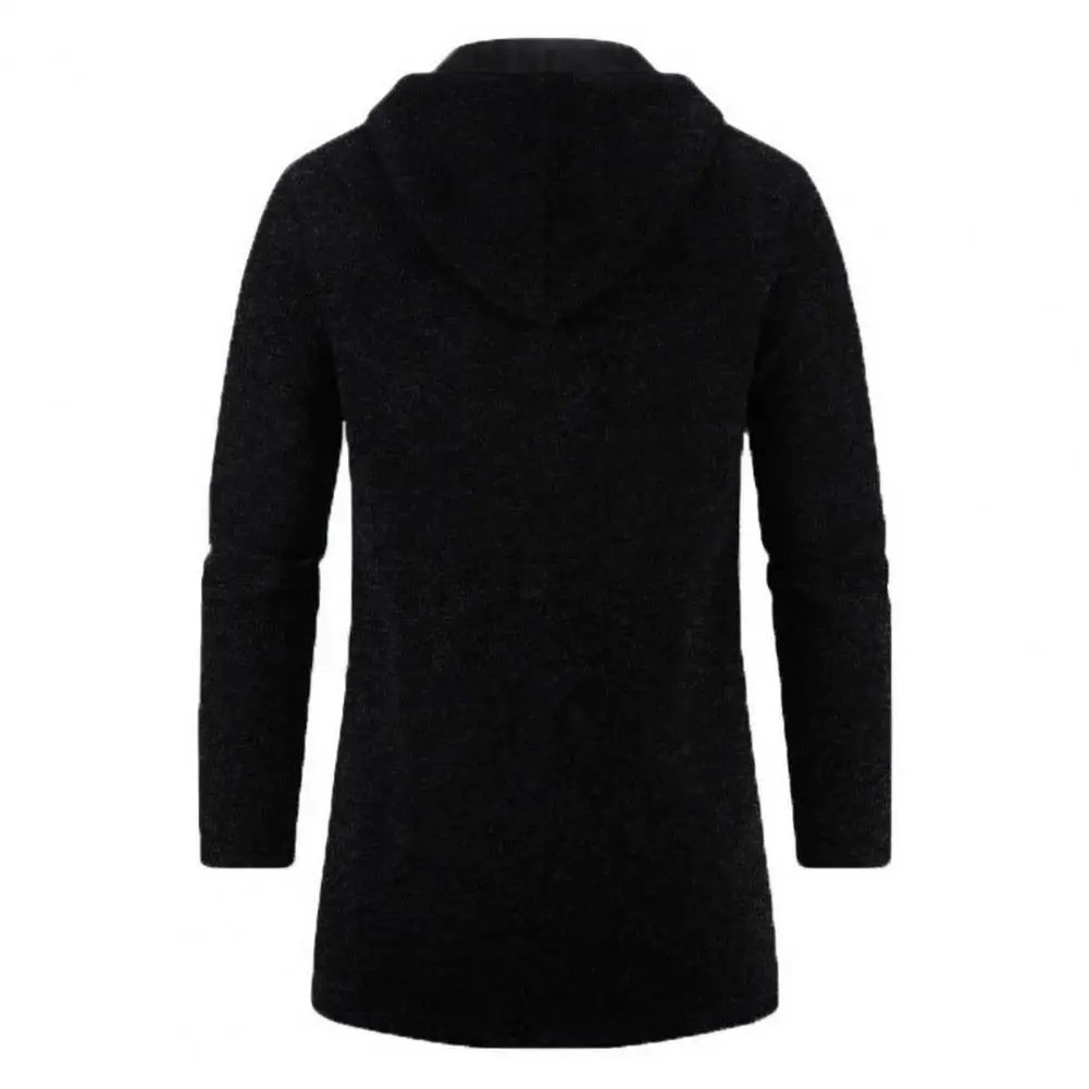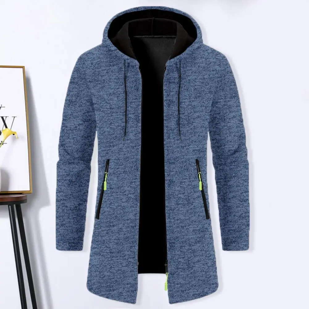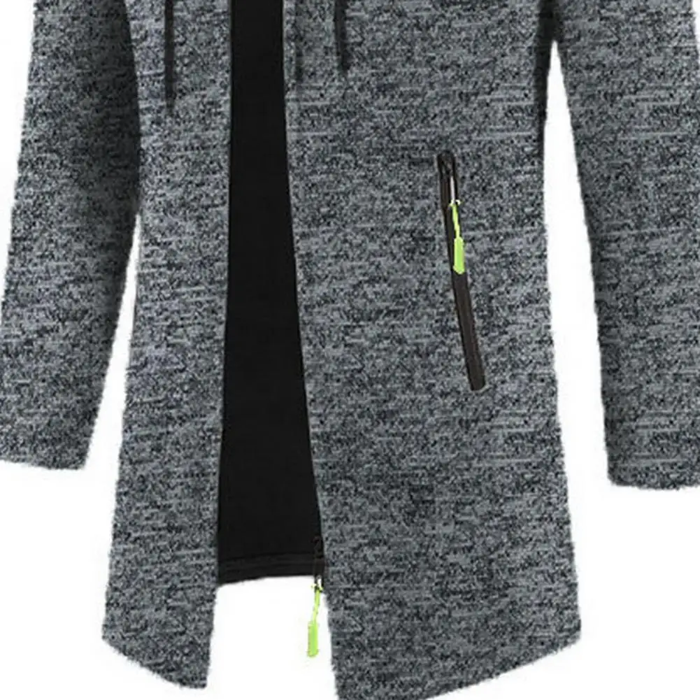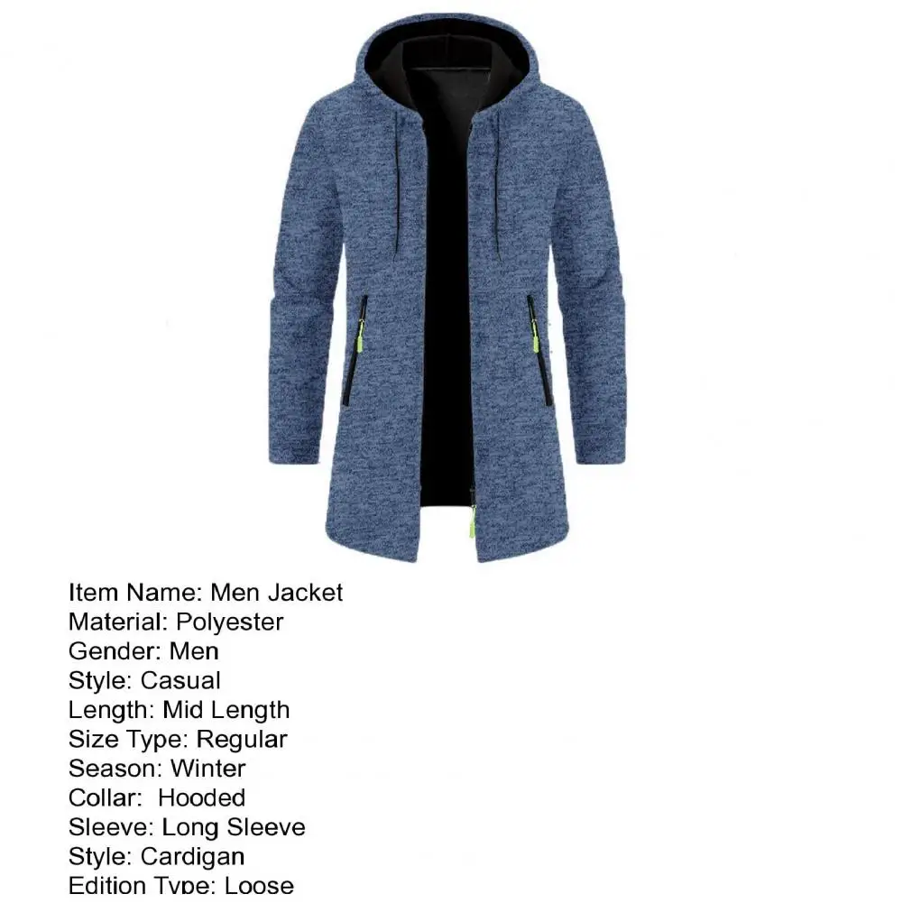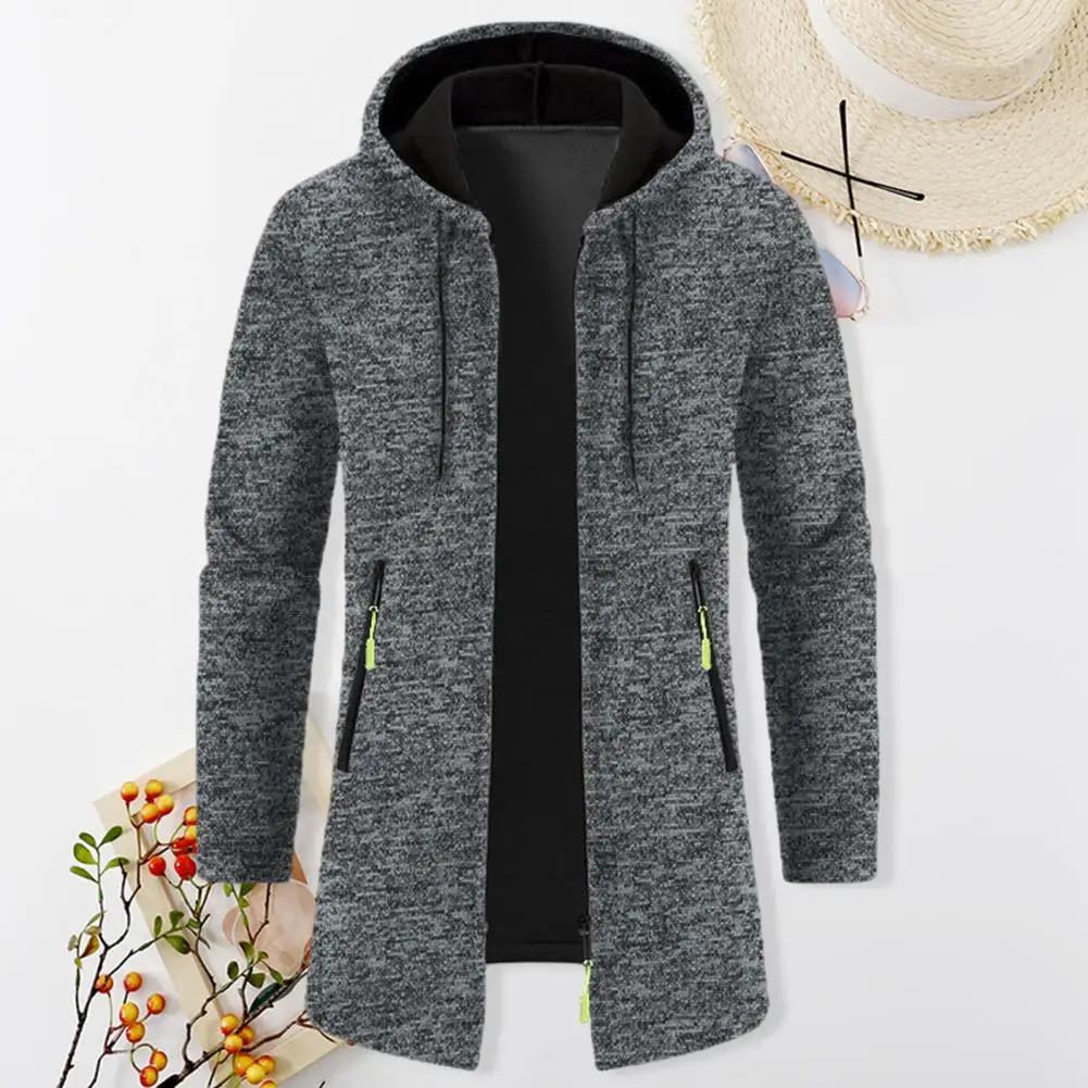 Chaqueta de hombre elegante gruesa de longitud media con capucha y cremallera, cárdigan versátil para otoño/invierno