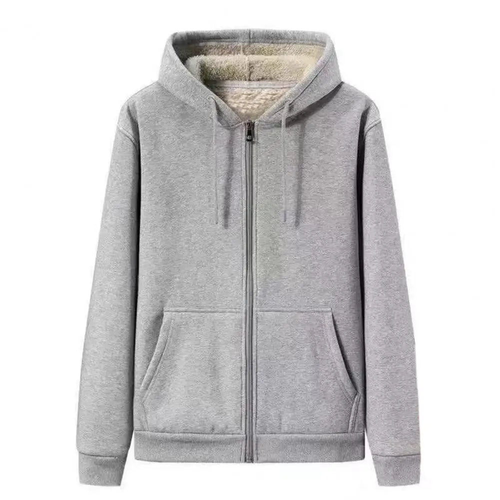 Abrigo con capucha para hombre, chaqueta de invierno gruesa de felpa con capucha de color sólido para uso diario