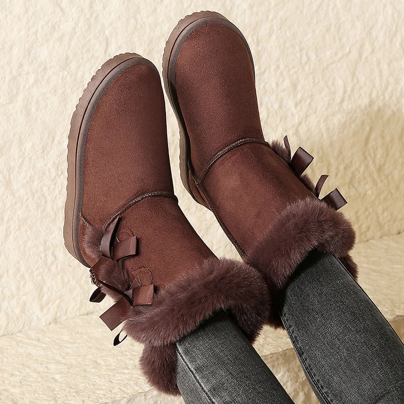 Color : negro/marrón/caféBotas de nieve de gamuza mullida para mujer, lindas botas cálidas con forma de mariposa, zapatos de plataforma de algodón con suela gruesa para otoño e invierno