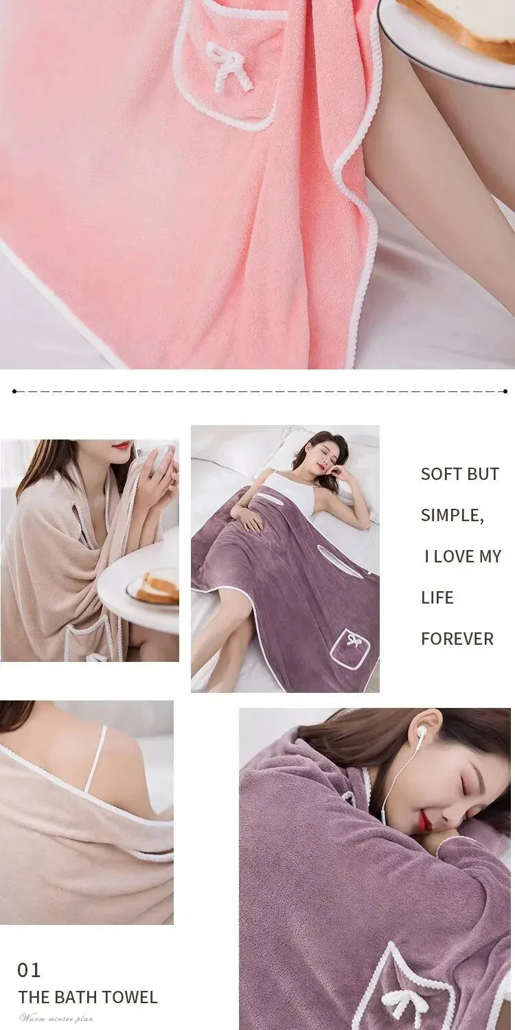 5. Widely Applicable: Women's soft and warm velvet beach bath towel, long thick spa bathrobe, pajamas, home robes, suitable for college dorms, swimming pools, gyms, beaches, spas, locker rooms, bathrooms, and bedrooms.